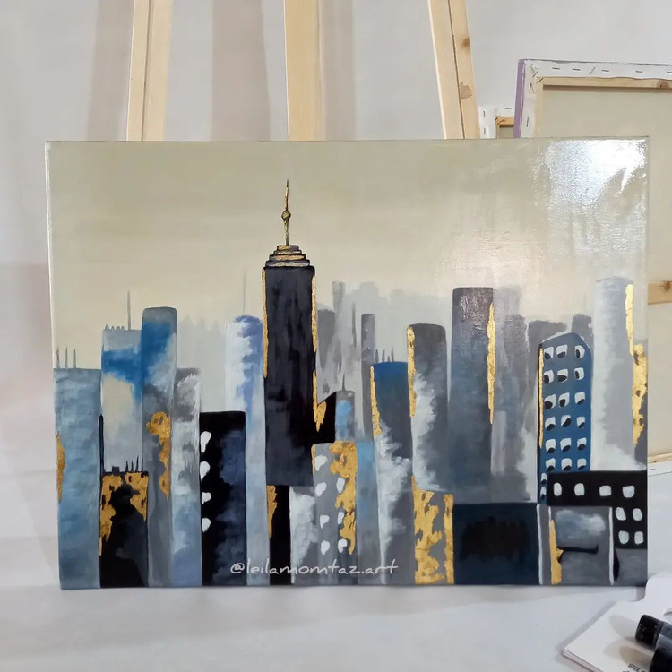 تابلو شهر سایز کار ۶۰در۸۰ کار شده با رنگ اکرلیک و ورق طلا جامد در صورت انتخاب سایز و رنگ دلخواه به پیج @leilamomtaz.art یا آیدی تلگرام @parandezad پیام بدهید 🙏🙏
