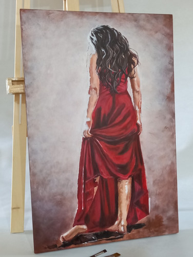 تابلو دکوراتیو دختر لباس قرمزی سایز ۹۰در۶۰